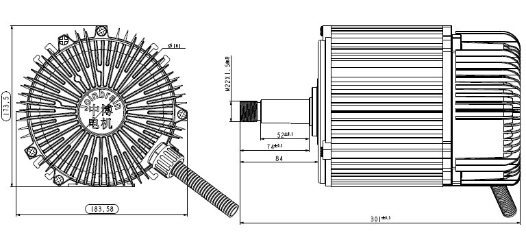 转速100~580rpm无级可调,可通过外接电位器,温控器进行调速,或根据客户需求按室内温度自动调节转速,也可以与主控板连接通过模拟或485通信进行调速。